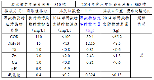 2014年公司投资300多万元对废水处理站进行了升级改造,引进了国外先进、高效的MVR蒸发工艺,于2014年12月通过环保验收(验收批文号[深人环监[2014]94号]),验收后正式投入运行。